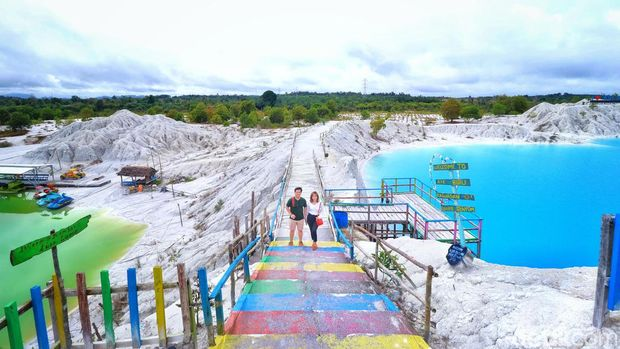 Danau ini terbentuk di atas lahan bekas tambang timah dan memiliki air berwarna biru yang kontras dengan bebatuan putih di sekelilingnya. Keindahan warna danau yang jernih ini menjadikannya tempat yang sangat Instagramable. Jika Anda suka dengan foto-foto alam yang eksotis, tempat ini wajib masuk daftar kunjungan.